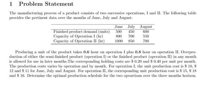 Solved 1 Problem Statement The manufacturing process of a | Chegg.com