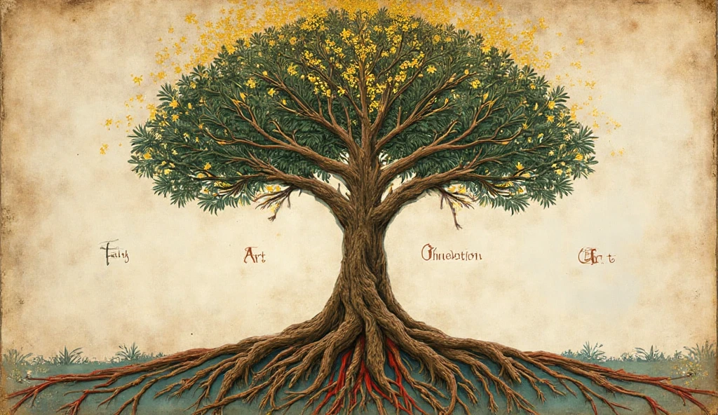 Illustration of the tree of life in a kabbalistic manuscript on Craiyon