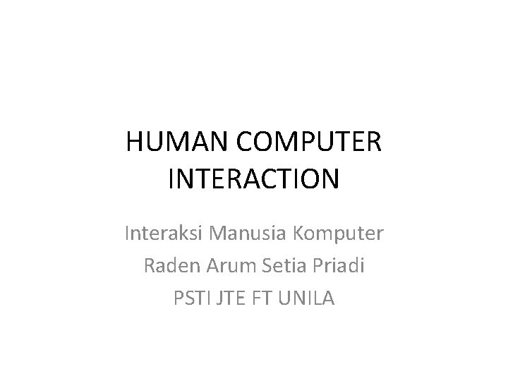 HUMAN COMPUTER INTERACTION Interaksi Manusia Komputer Raden Arum