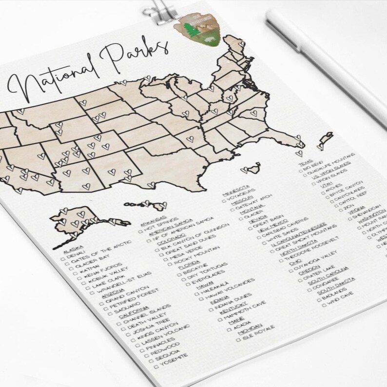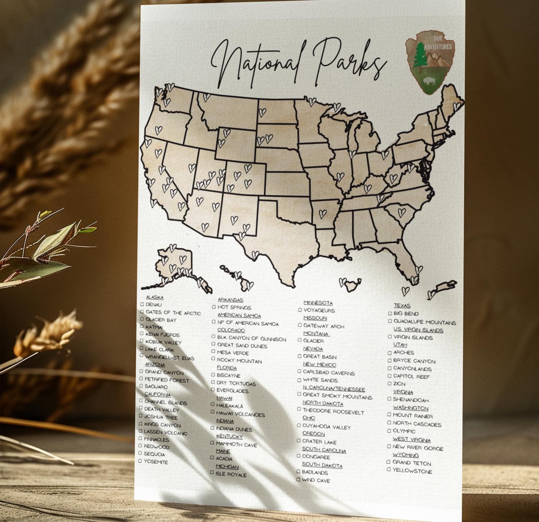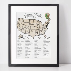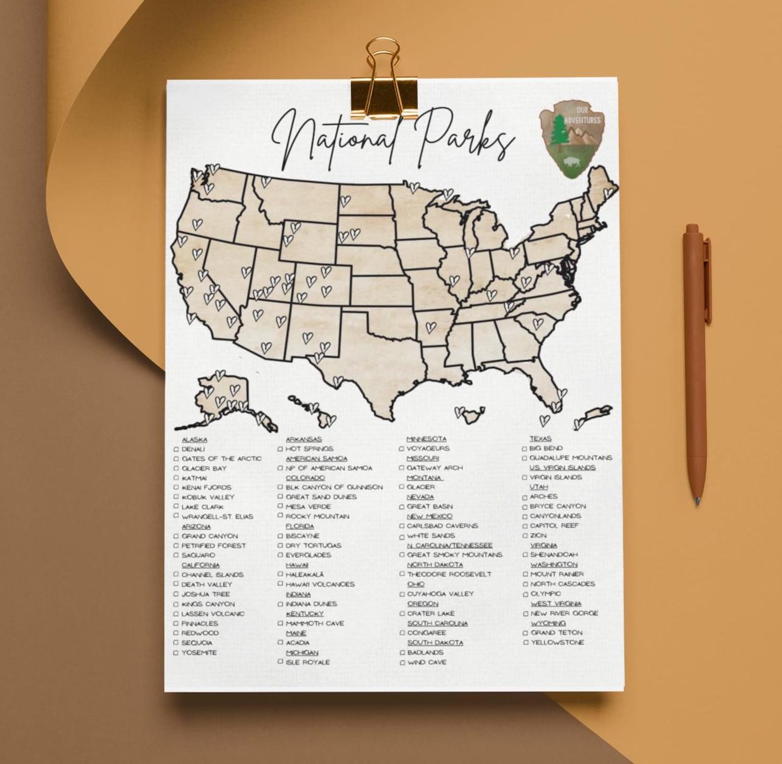 National Parks Map Checklist - Instant Download Designed & Sold By Zoica