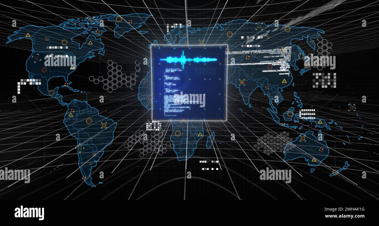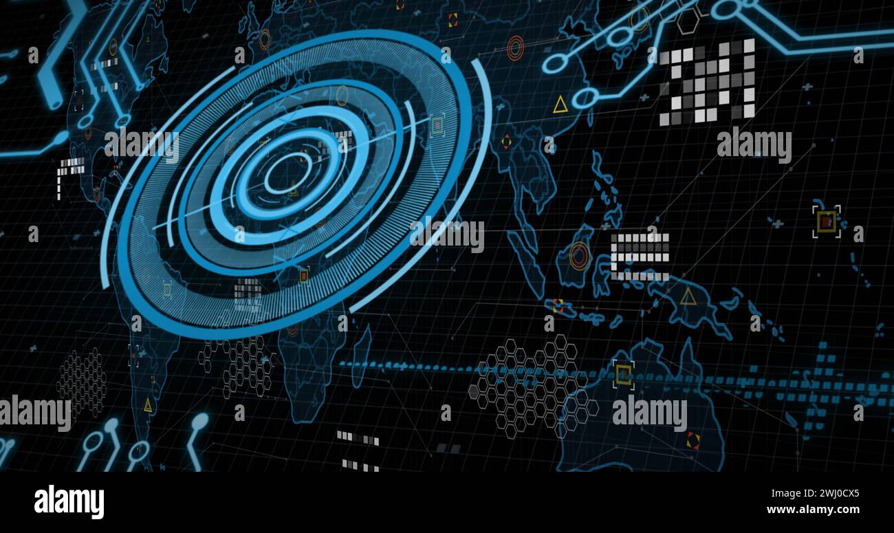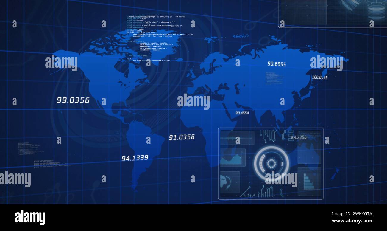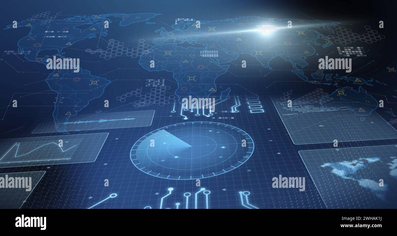 Image of world map and data processing on interface Stock Photo - Alamy
