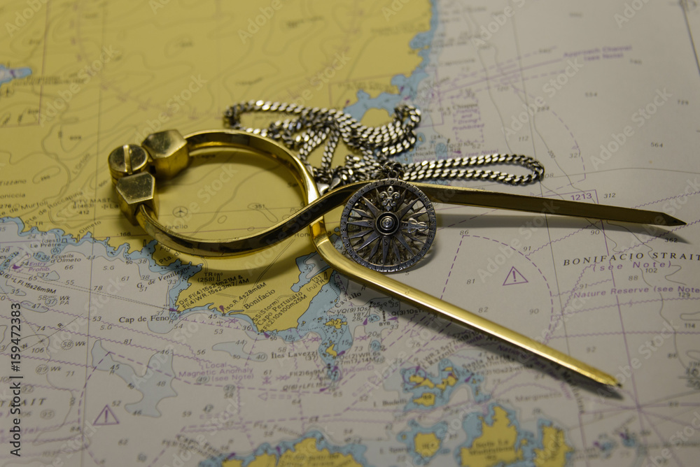 Map Divider On The Sailors Map Stock Photo - Download Image Now ...
