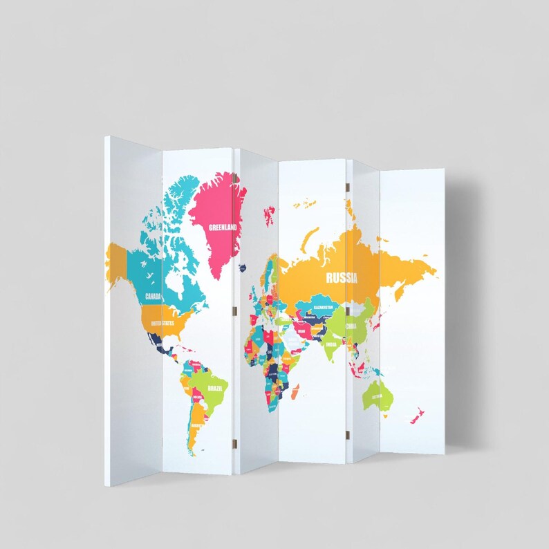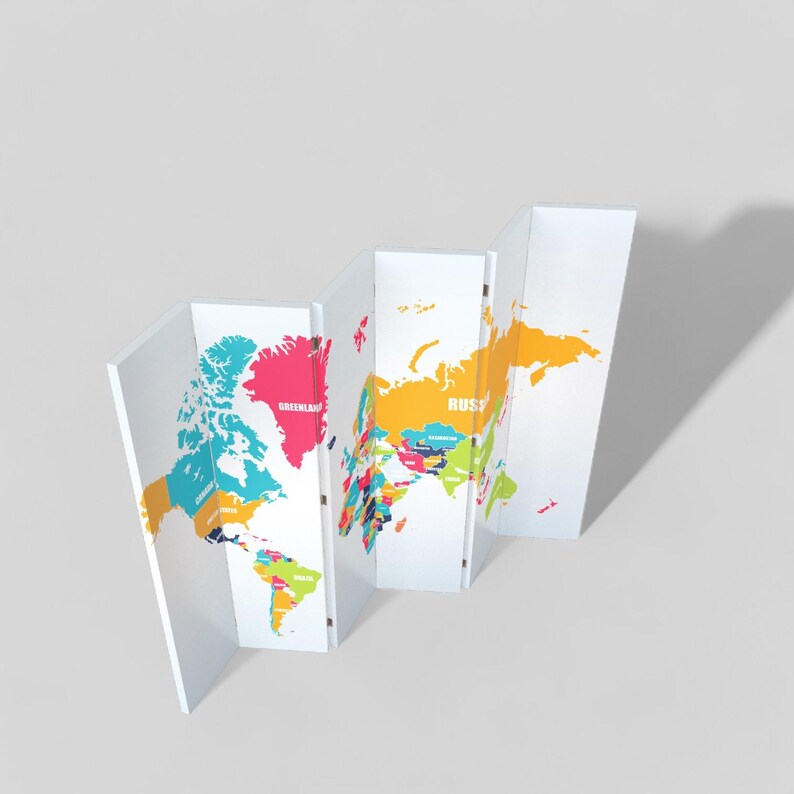 World Map Room Divider Screen | Foldable Privacy Partition & Decorative ...