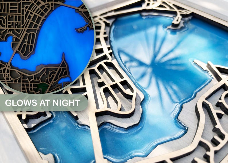 Custom Wooden City Map Art Laser Cut Location Map Wall Art Custom Epoxy ...