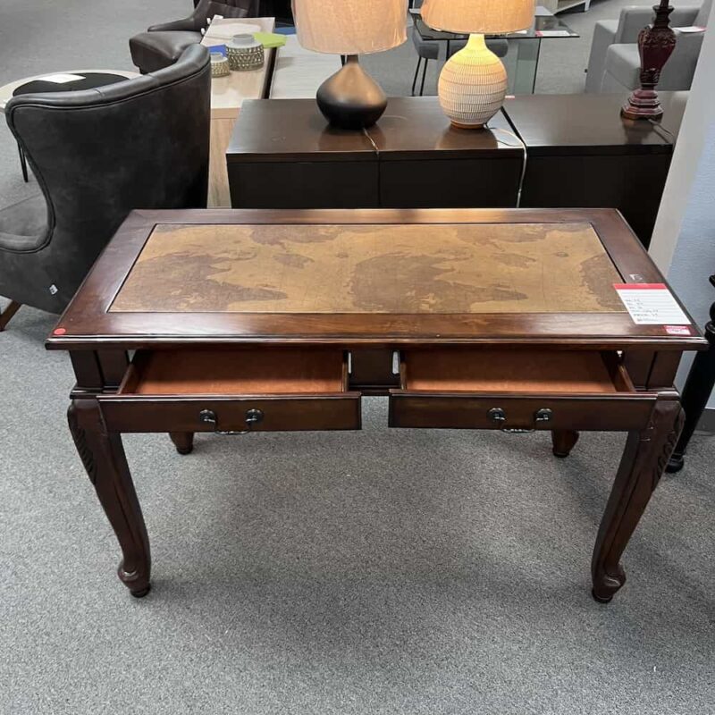 Oval Map Inlaid Leather Top Partners Desk - OPEN BOX