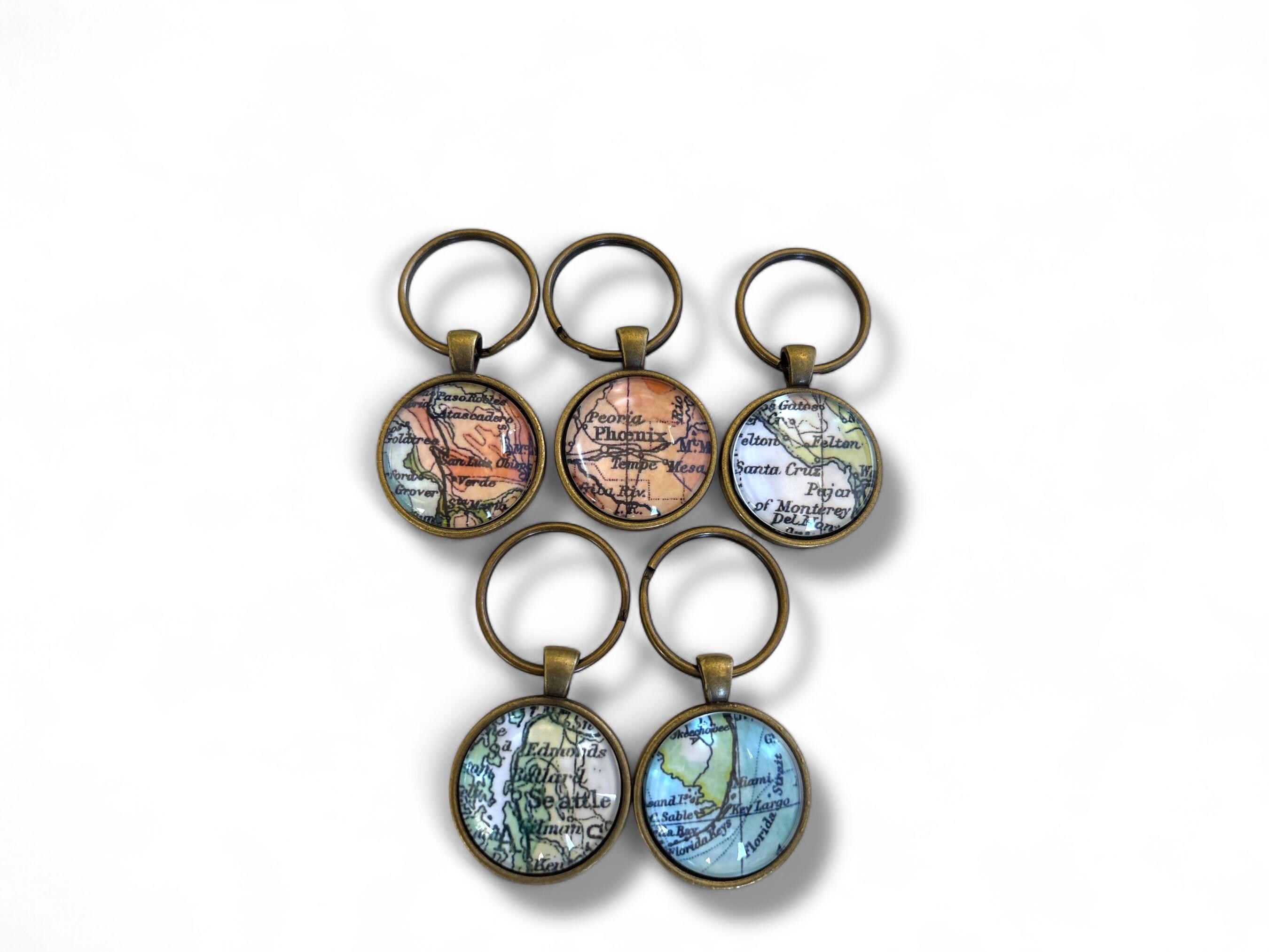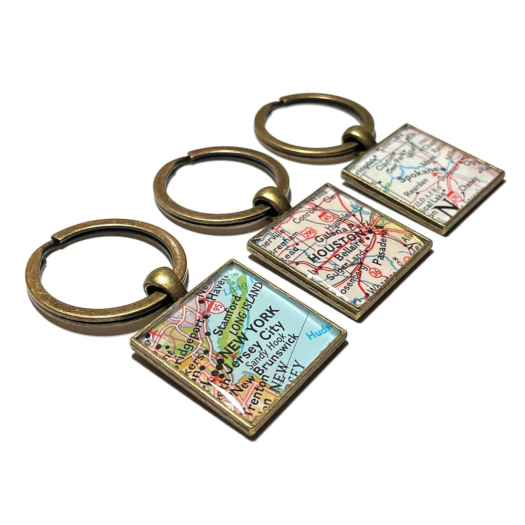 Custom MAP KEYCHAIN / Custom Vintage Map Key Chain / You Pick - Etsy