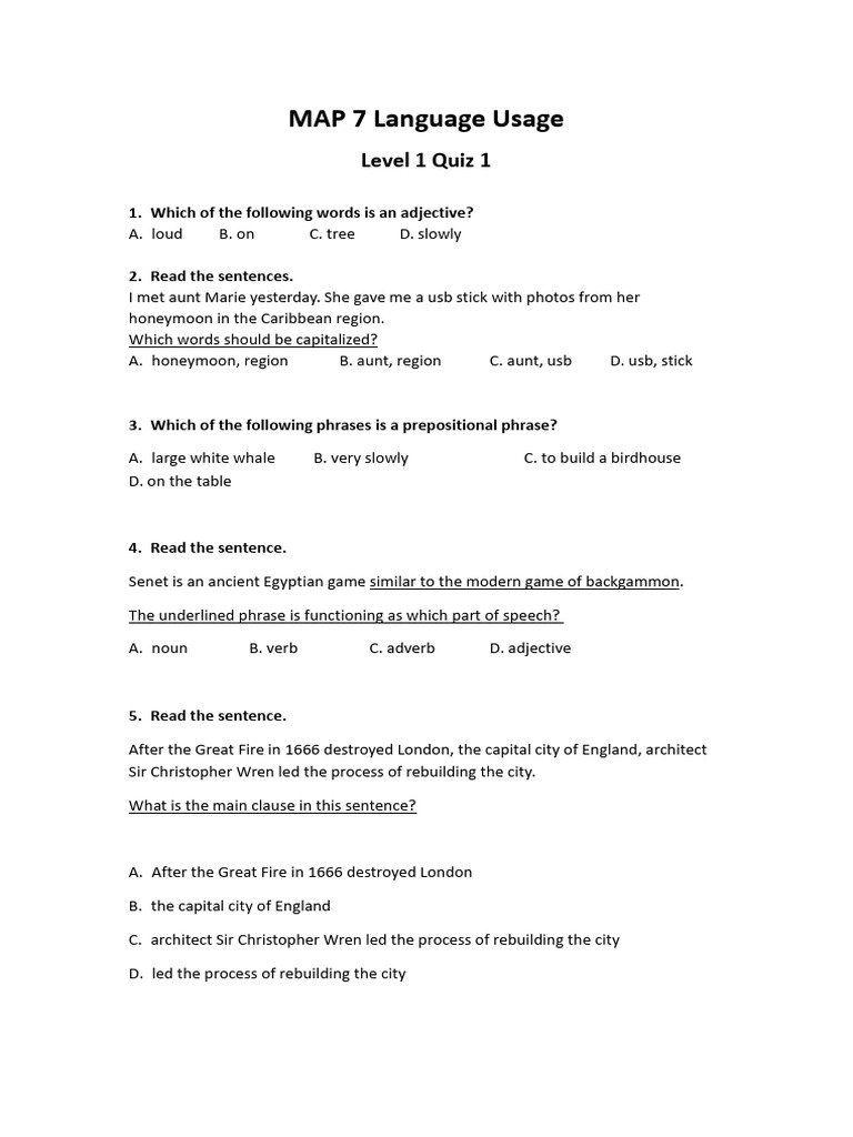 Testprep-MAP 7 Language Usage | PDF | Phrase | Adverb