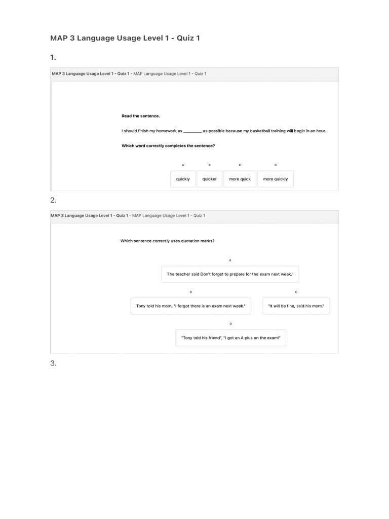 MAP 3 Language Usage Level 1 - Quiz 1 | PDF