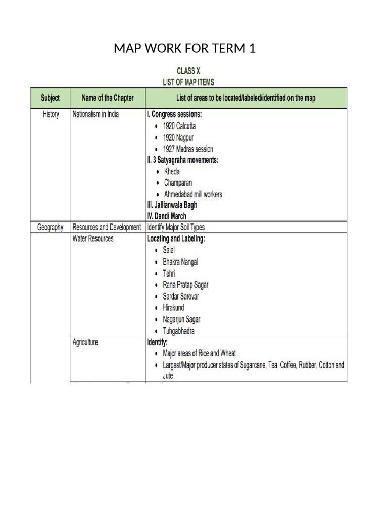 Class 10th - History - Nationalism in India - Map Work Notes | PDF