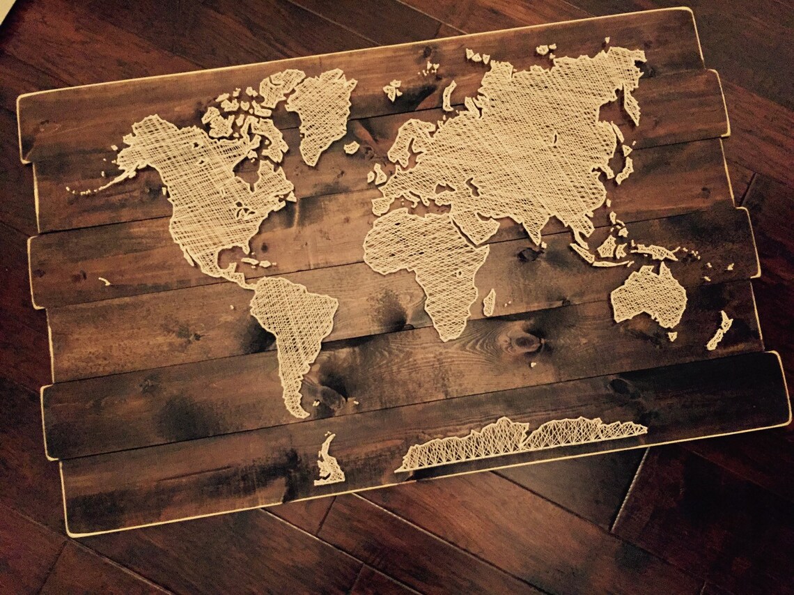 String Art world Map on Wood String Picture - Etsy