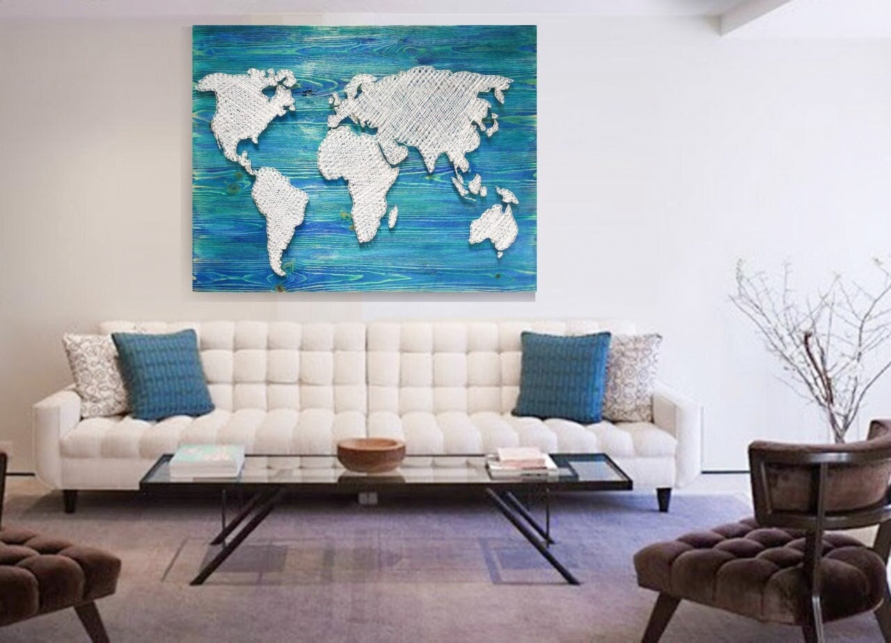 World Map String Art Large Wall World Map Blue World Map - Etsy