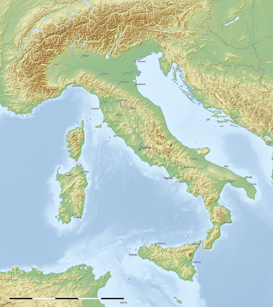 Map of Italy with cities - Map of Italy showing major cities (Southern ...