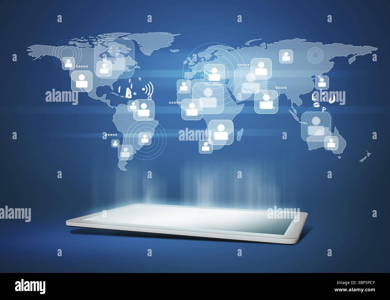 Tablet pc and world map digital image on color background Stock Photo ...