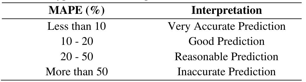 Typical mape interpretation as shown in table 1 above, it