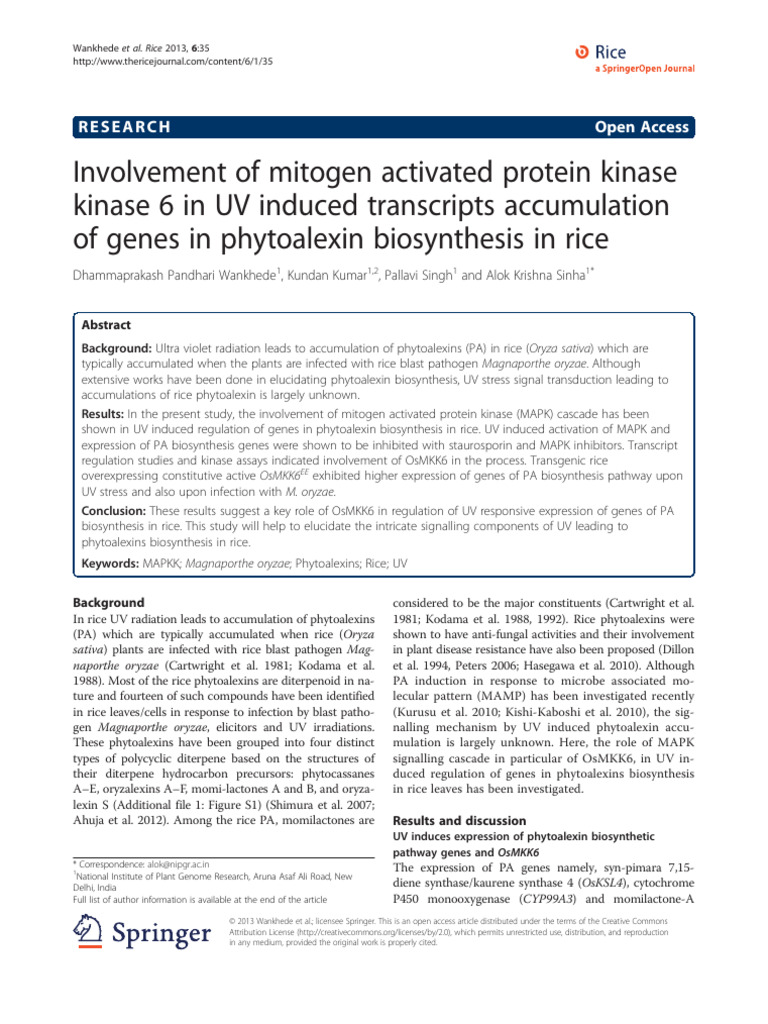 MAPK6 Role in Rice UV Phytoalexin Biosynthesis | PDF | Mitogen ...