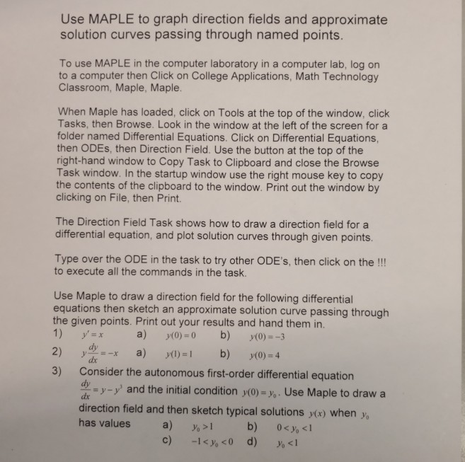 Use MAPLE to graph direction fields and approximate | Chegg.com