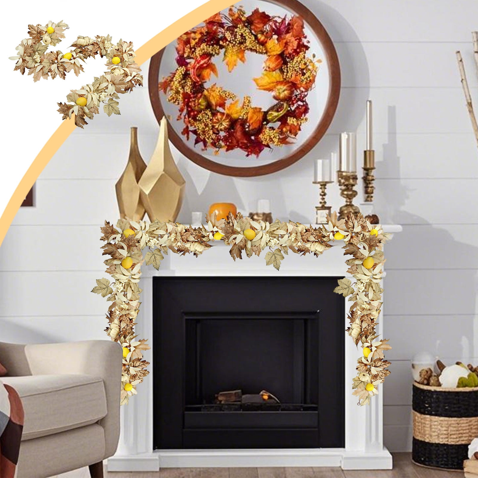 geerera Artificial Fall Garland, 67.7-Inch White Maple Leaf and Pumpkin ...