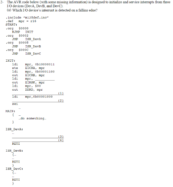 Solved 2- The AVR code below (with some missing information) | Chegg.com