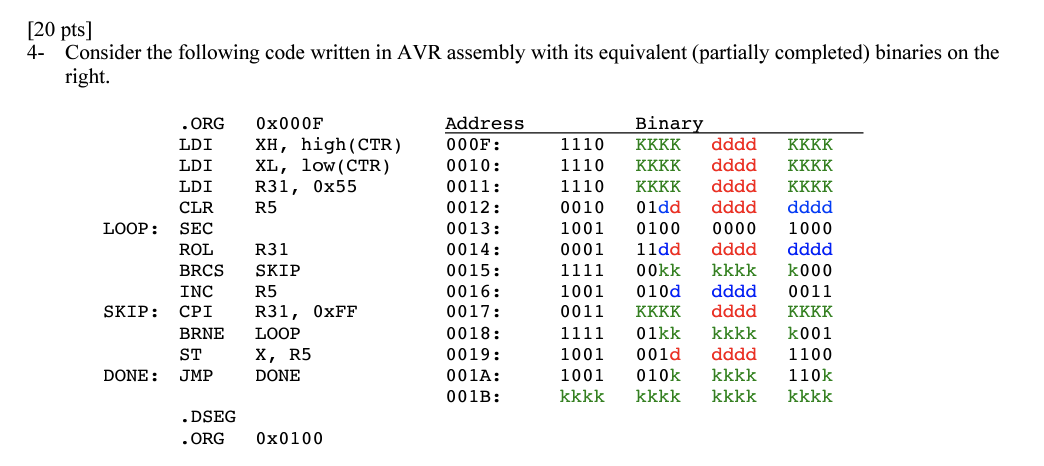 Solved 4 For the following AVR code, determine the machine | Chegg.com