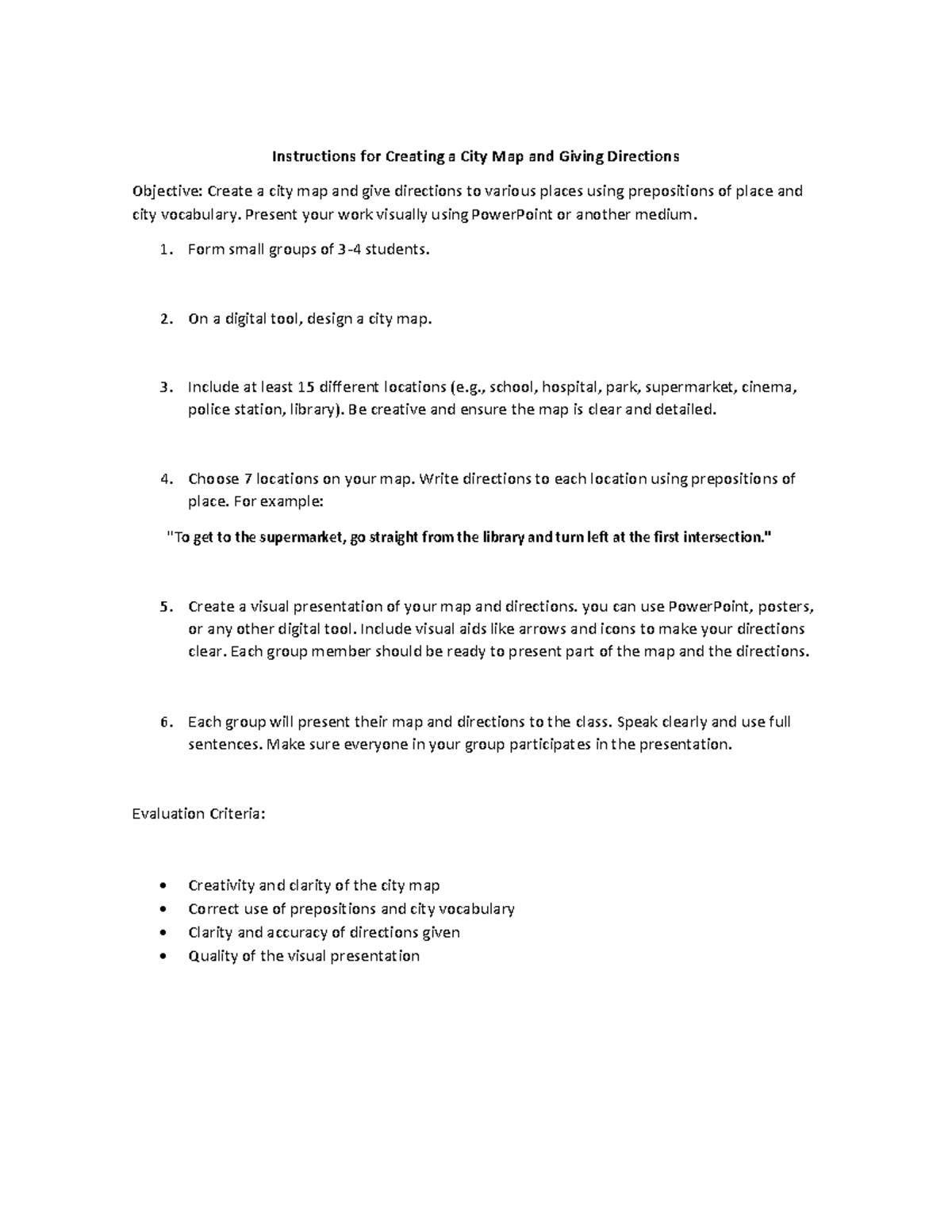Instructions for Creating a City Map and Giving Directions - Present ...