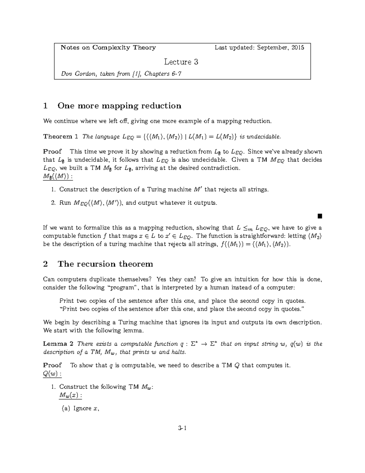 Lecture 03 2015 - One more mapping reduction - Notes on Complexity ...