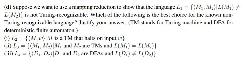 (d) Suppose we want to use a mapping reduction to | Chegg.com