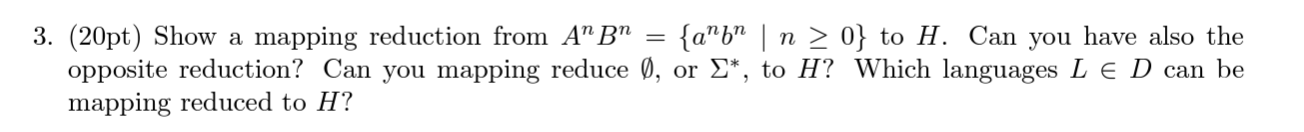 Solved 3. (20pt) Show a mapping reduction from | Chegg.com
