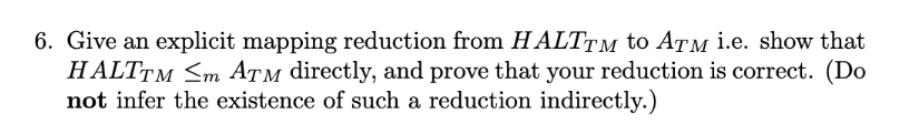 Solved 6. Give an explicit mapping reduction from HALTTM to | Chegg.com