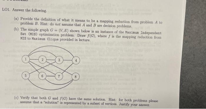 Solved O1. Answer the following. (a) Provide the definition | Chegg.com