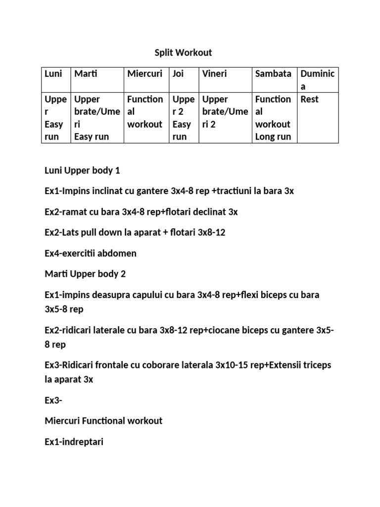 Training Split Program | PDF