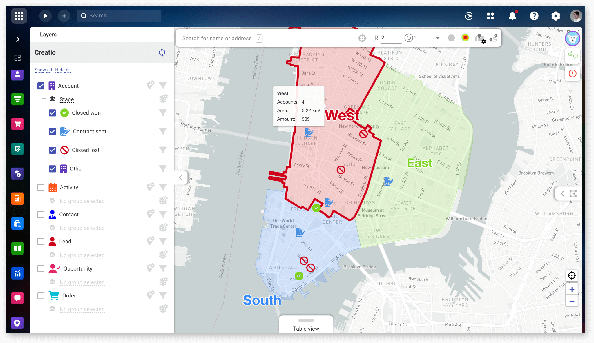 Map for Insightly: geo-location, routing, territories, automation - Mapsly