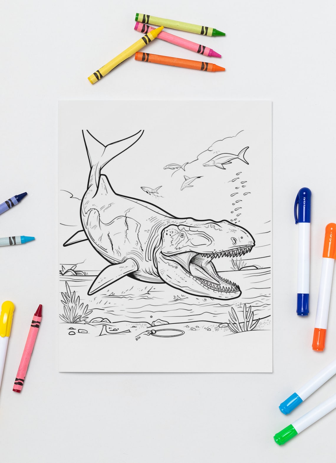 Mosasaurus in Water: A Prehistoric Coloring Adventure - Free Printable ...
