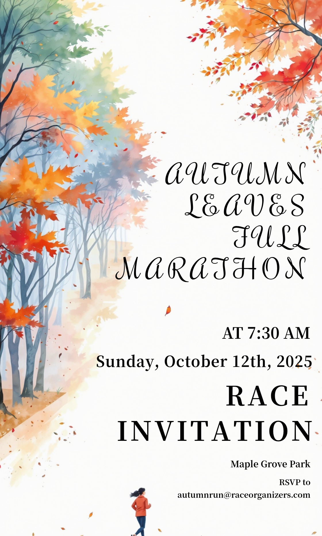 Autumn Leaves Full Marathon Invitation Template - AI Designs by MolyPix.AI