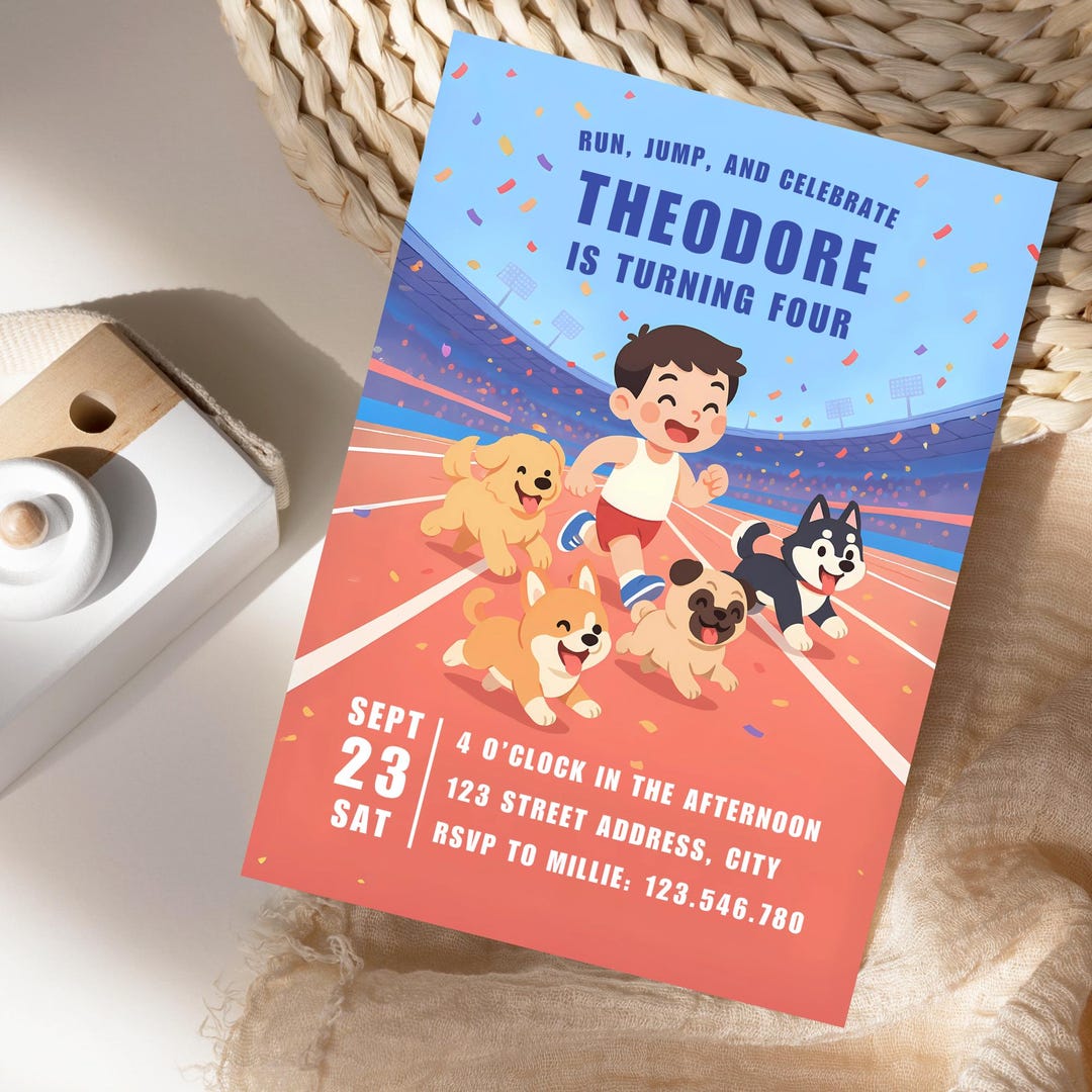 Boy Runner Birthday Invitation, Running Birthday Party Invite, Marathon ...