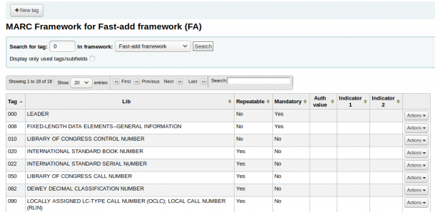 How to create a new MARC framework | Solutions inLibro inc.