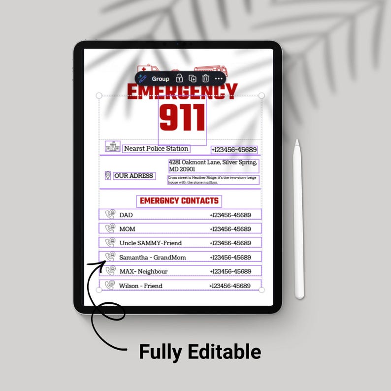 Fiche de contact en cas d'urgence Modèle imprimable d'informations sur ...