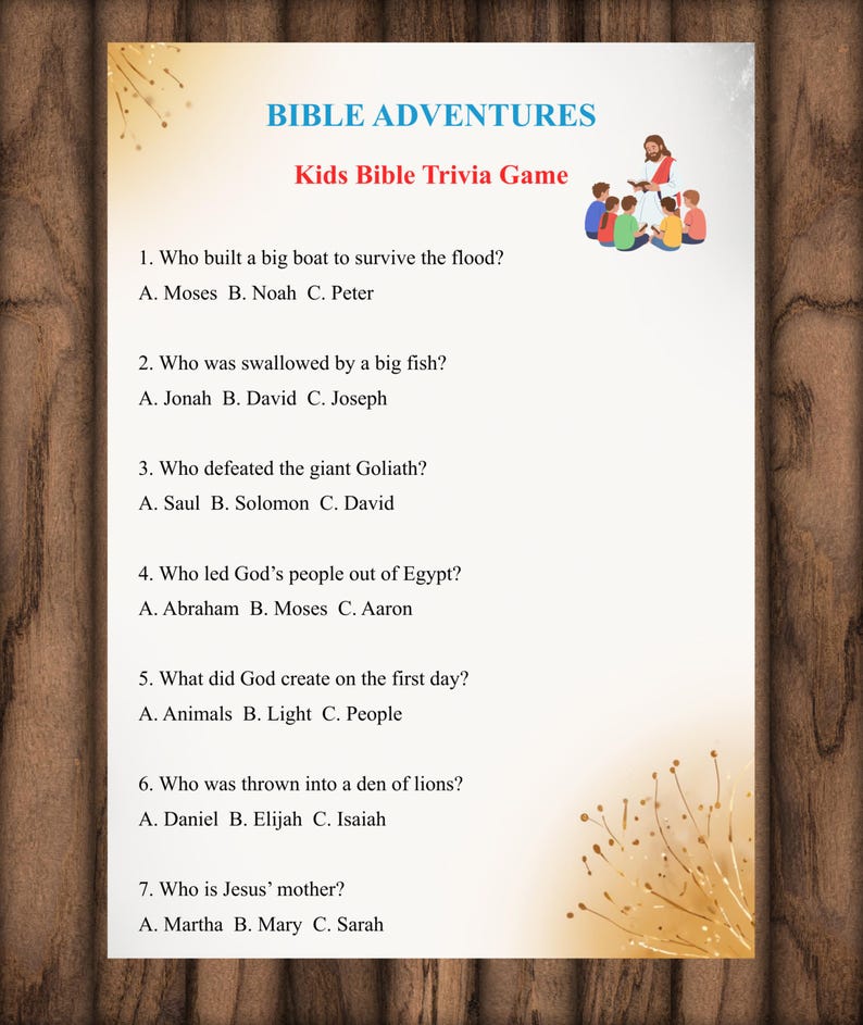 Jeu-questionnaire biblique pour enfants, jeu chrétien pour enfants ...