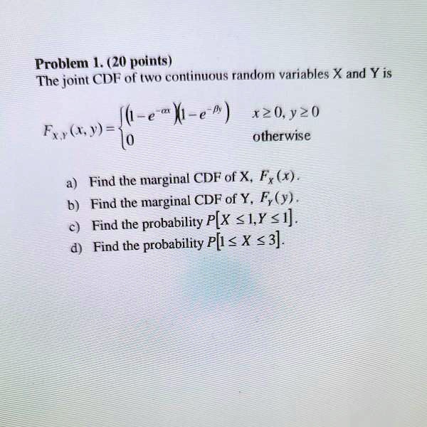 Solved Problem 1. (20 points) The joint CDF of two | Chegg.com