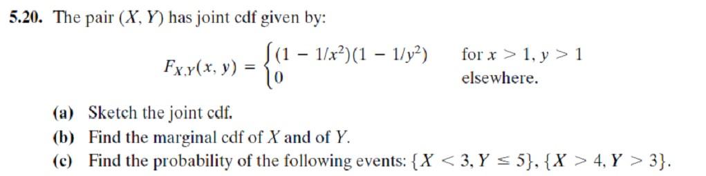 Solved 5.20. The pair (X,Y) has joint cdf given by: | Chegg.com