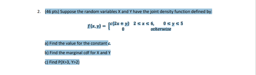 Solved 2. (46 pts) Suppose the random variables X and Y have | Chegg.com
