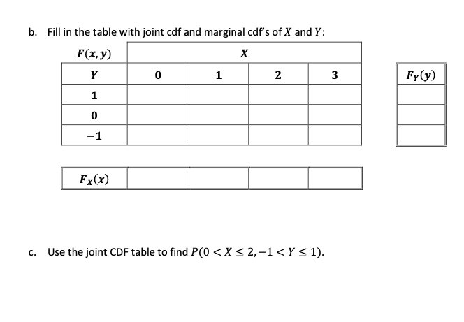 b. Fill in the table with joint cdf and marginal | Chegg.com