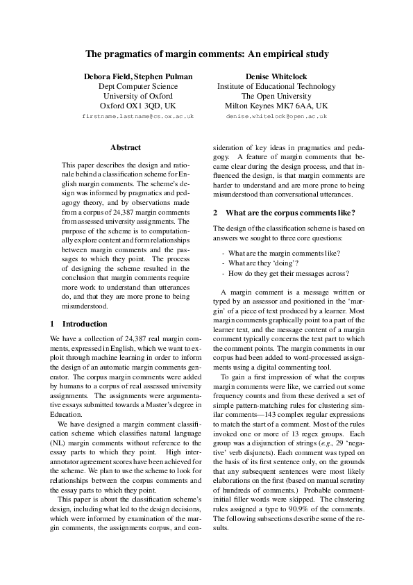 (PDF) The pragmatics of margin comments: An empirical study