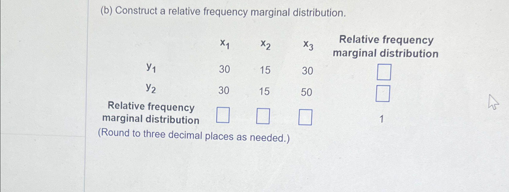 Solved (b) Construct a relative frequency marginal | Chegg.com