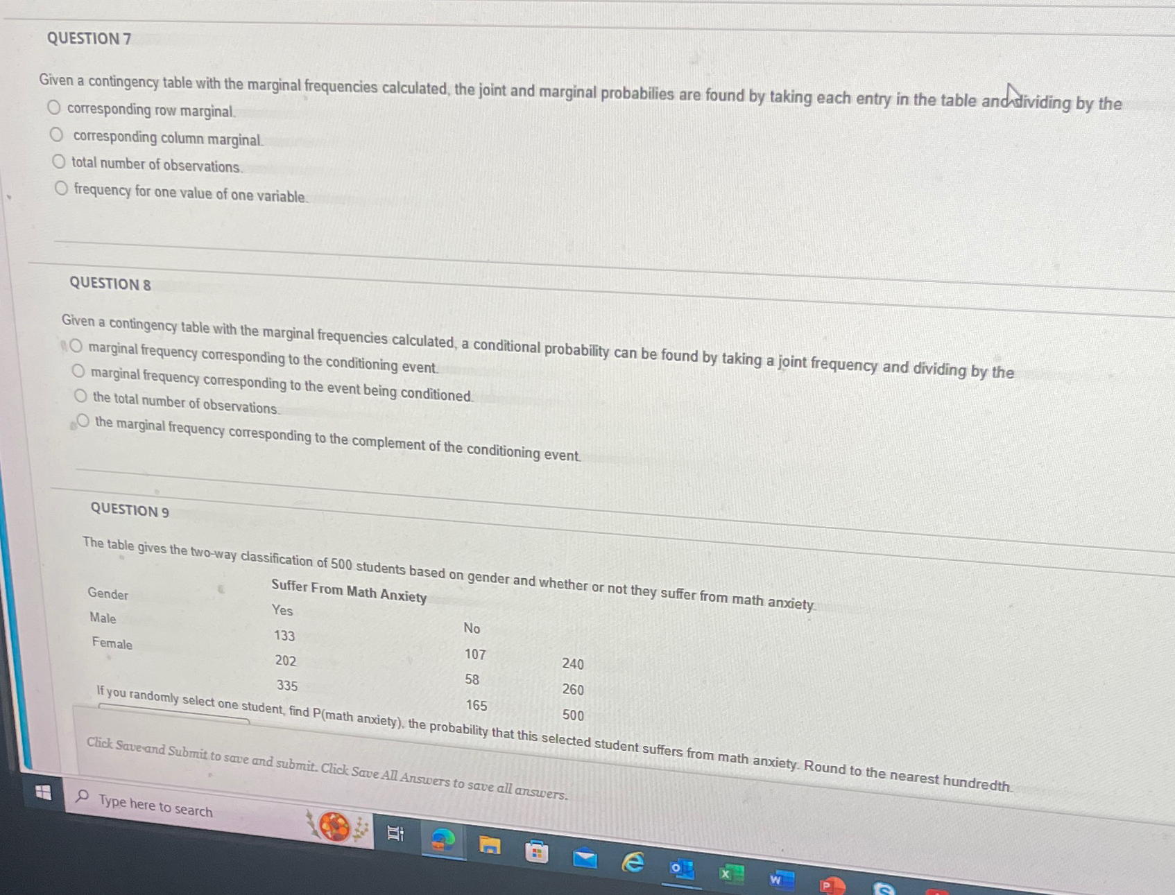 Solved QUESTION 9 Find the marginal frequencies for the | Chegg.com