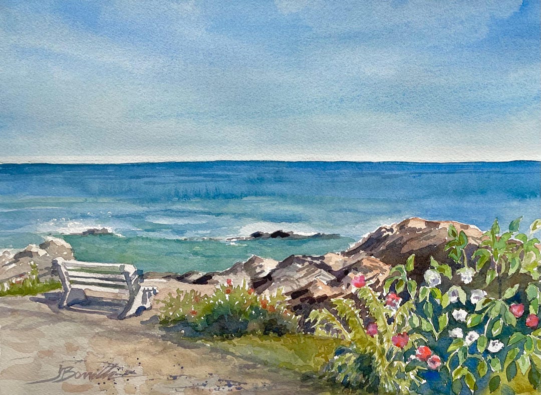 PRINT Marginal Way Benches in Summer Ogunquit Maine Seascape (14”x11 ...