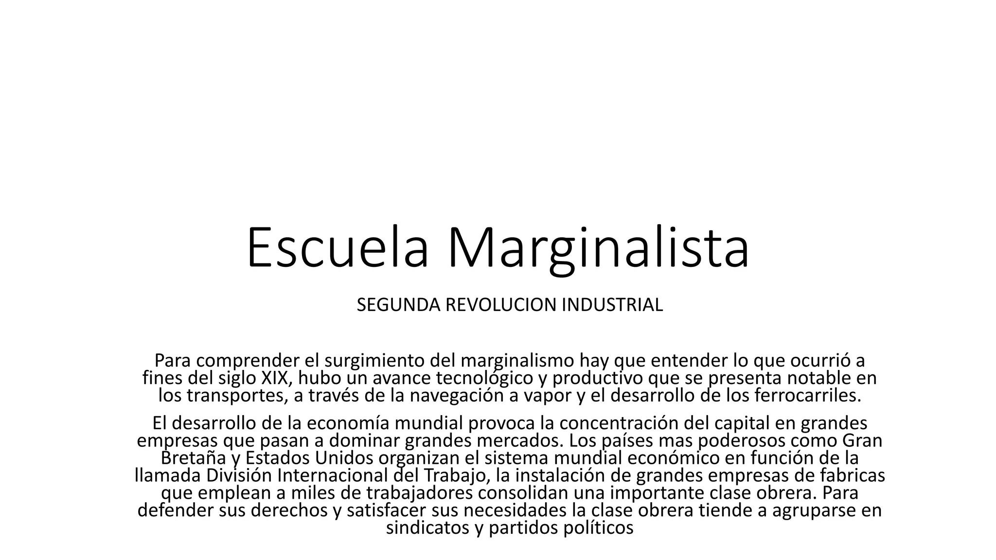 Marginalista - LA ESCUELA MARGINALISTA El marginalismo es una escuela ...