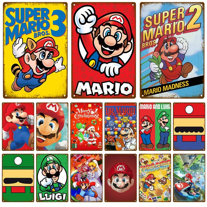 Mario Game Poster Cute Wall Signs Decor Metal Vintage Tin Sign Vintage ...
