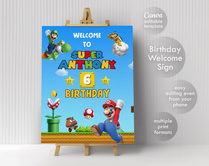 Super Mario Welcome Sign Birthday Sign Reception Editable Mario Bros ...