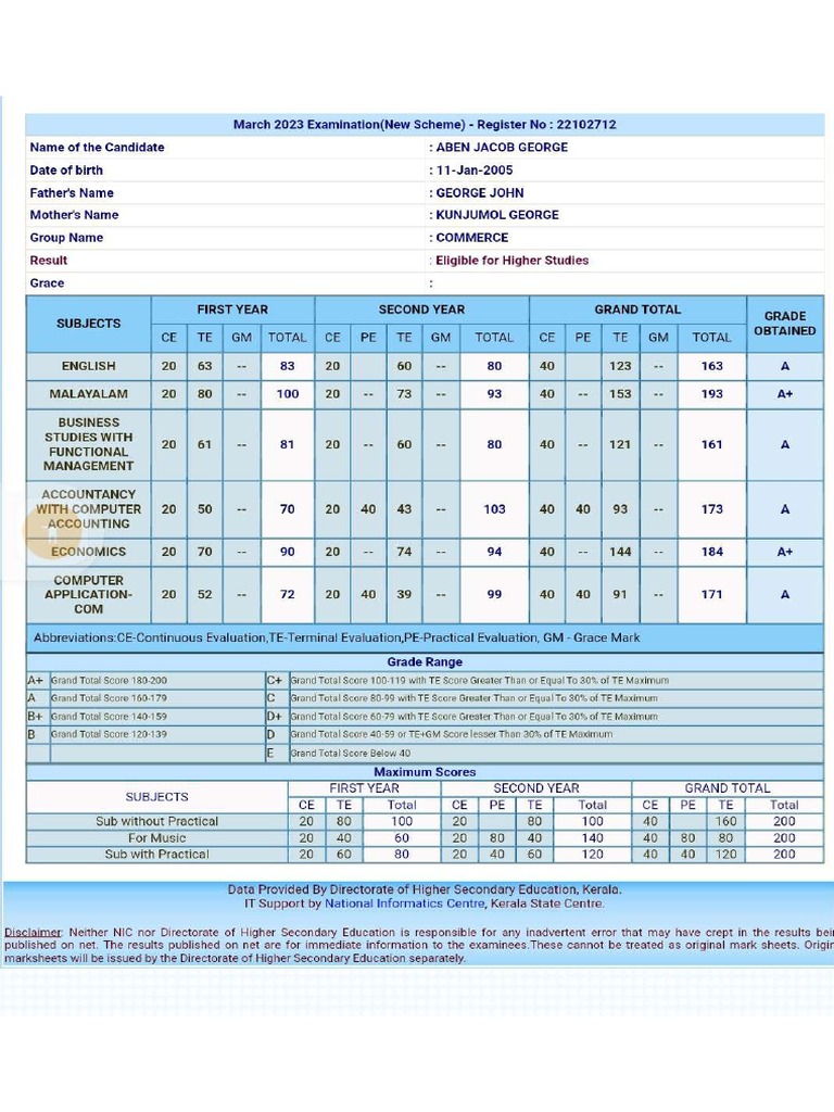 Plus Two Mark List PDF | PDF