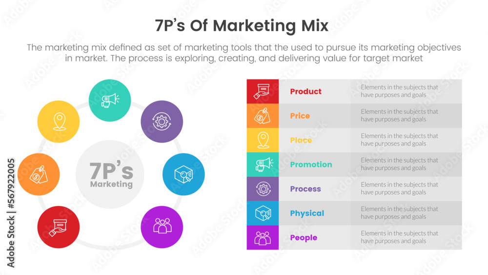 Marketing 7ps diagram. Customer strategy with market management and ...